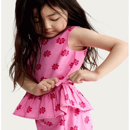 F&F Girls 2-Piece Pure Cotton Flower Vest and Shorts in Cream