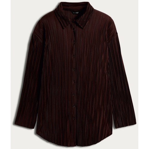 Plisse Pleated Button Up Shirt in Chocolate