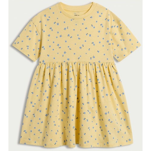 F&F Girls Pure Cotton Floral Print Short Sleeved Dress in Yellow