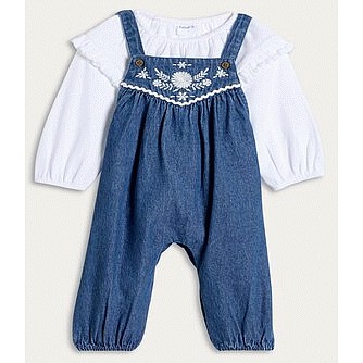 2-Piece Embroidered Dungarees and Top Set in Blue