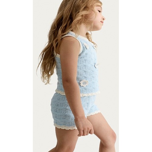 F&F 2-Piece Girls Pure Cotton Knitted Flower Top and Shorts Set in Blue
