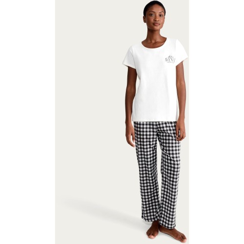 Pure Cotton T-Shirt and Bottoms Pyjama Set in Multi Black White