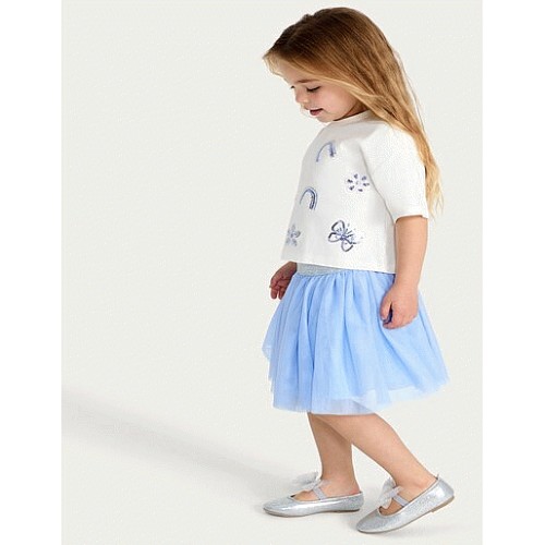 F&F Girls 2-Piece Sequin T-Shirt and Tulle Skirt Set in Blue
