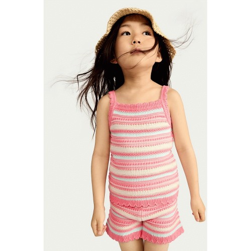 F&F Girls 2-Piece Cotton Rich Striped Knitted Vest and Shorts Set in Multi Pink