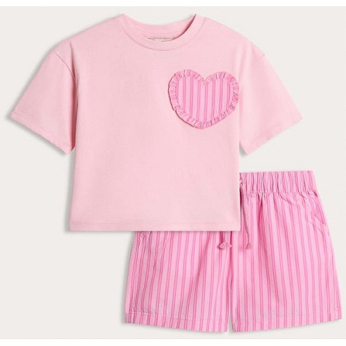 F&F Girls 2-Piece Pure Cotton T-Shirt and Striped Shorts Set in Pink