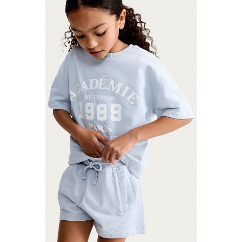 F&F Girls 2-Piece Pure Cotton Slogan T-Shirt and Shorts Set in Blue