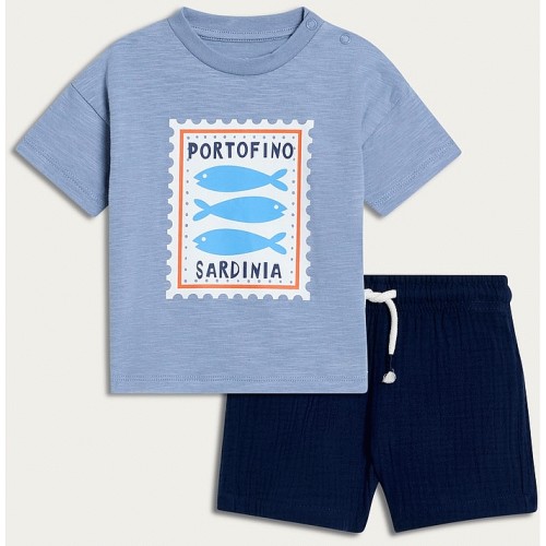 2-Piece Pure Cotton Portofino T-Shirt and Shorts Set in Blue