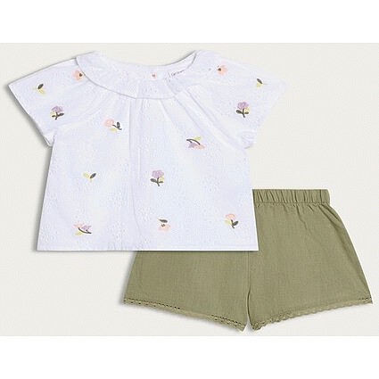 2-Piece Pure Cotton Embroidered T-Shirt and Shorts Set in Cream