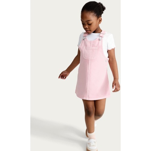 F&F Girls 2-Piece Pure Cotton Denim Pinafore Dress and T-Shirt Set in Pink