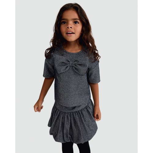 F&F Girls 2-Piece Sparkle Bow Top and Skirt Set in Black