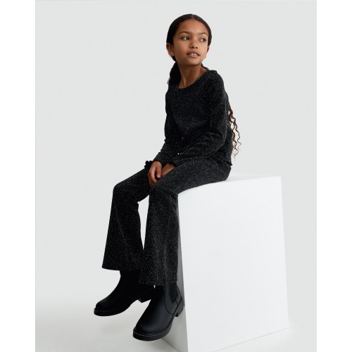 F&F Girls 2-Piece Ribbed Glitter Top and Flared Legging Set in Black