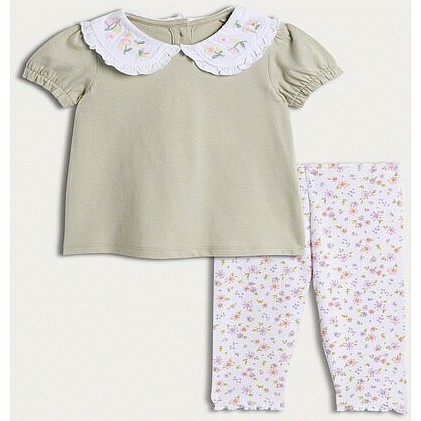 2-Piece Pure Cotton Floral Collar Top and Legging Set in Green