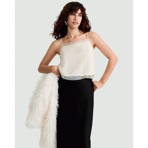 The F&F Edit Organza Trim Sequin Embellished Co-ord Camisole in Cream