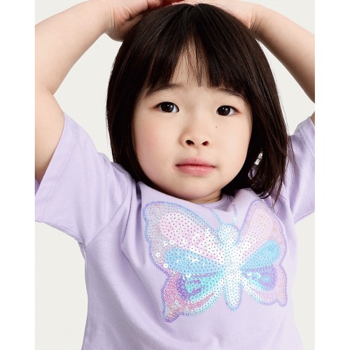 F&F Girls 2-Piece Sequin Butterfly T-Shirt and Tulle Skirt Set in Purple