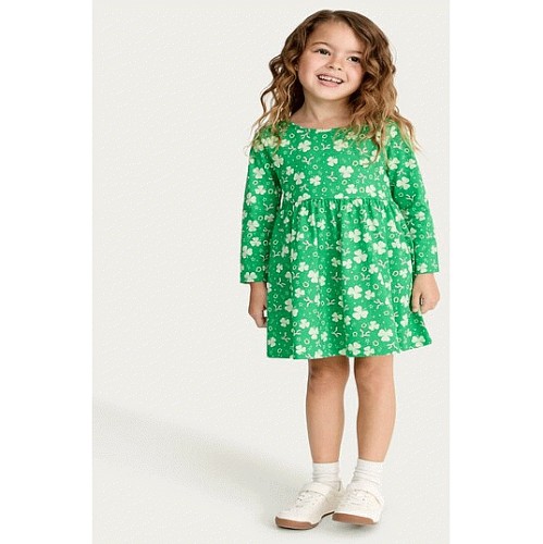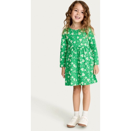 F&F Girls Pure Cotton St Patrick's Day Long Sleeved Dress in Green