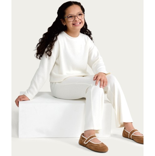 F&F Girls 2-Piece Long Sleeved Top and Flared Leggings Set in Cream