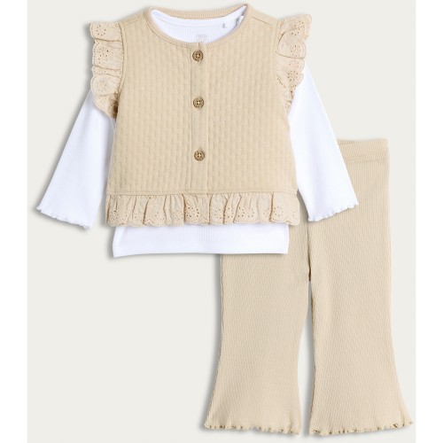 3-Piece Top Waistcoat and Flared Leggings in Stone