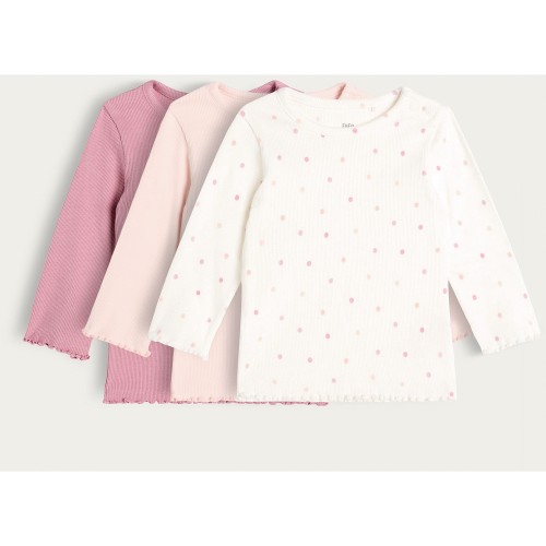 3-Pack Cotton Rich Long Sleeved Tops in Pink