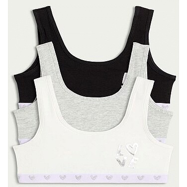 Girls 3-Pack Cotton Rich Love Print Crop Tops in Black