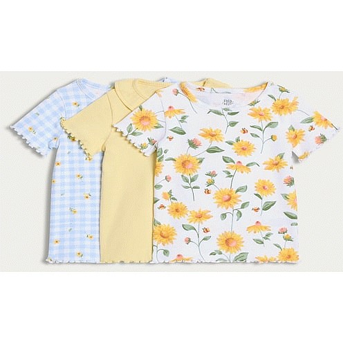 3-Pack Cotton Rich Ribbed Sunflower Print T-Shirts in Yellow