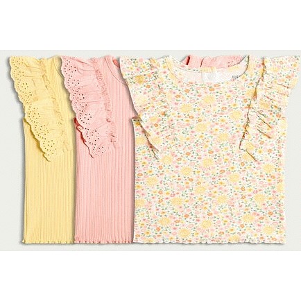 3-Pack Cotton Rich Ribbed Ruffle Sleeved T-Shirts in Yellow