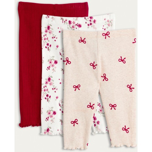3-Pack Cotton Rich Floral and Bow Print Leggings in Red