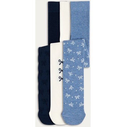 Girls 3-Pack Cotton Rich Supersoft Bow Patterned Tights in Multi