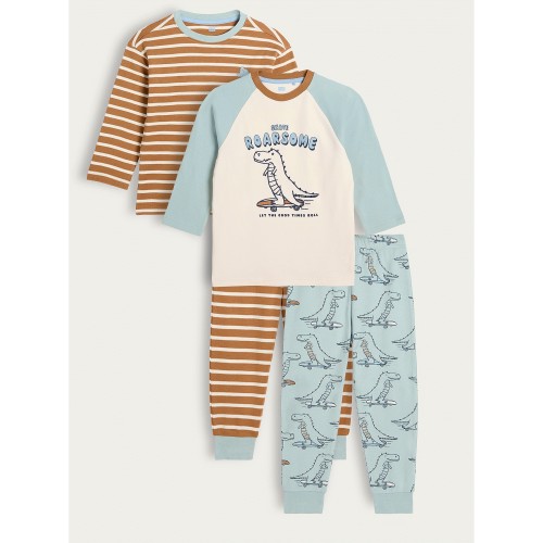 Boys 2-Pack Pure Cotton Roarsome Dinosaur Pyjamas in Cream Multi