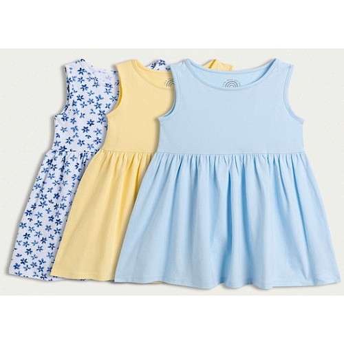 F&F Girls 3-Pack Pure Cotton Sleeveless Dresses in Multi Blue