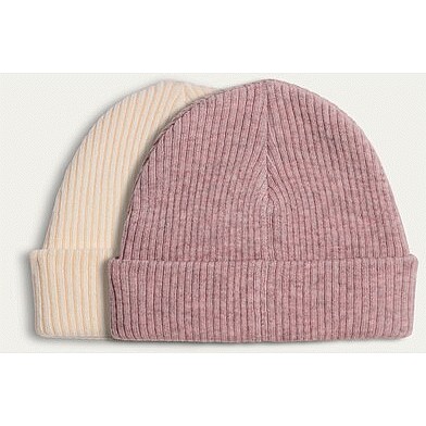 Girls 2-Pack Ribbed Beanie Hats in Neutral
