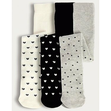 Girls 3-Pack Supersoft Heart and Polka Dot Print Tights in Black Multi