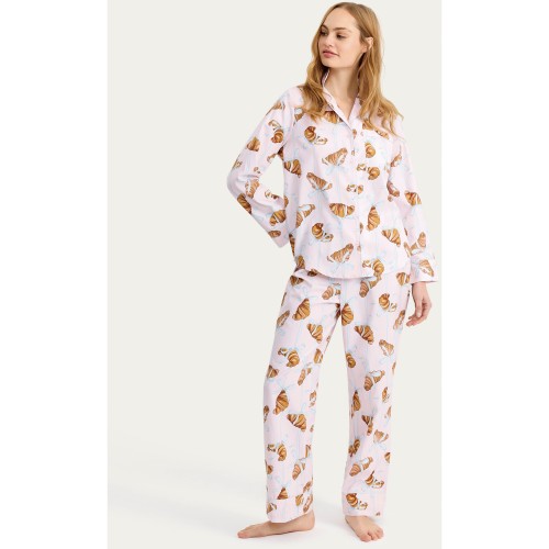 Croissant Print Pyjama Set in Multi Pink