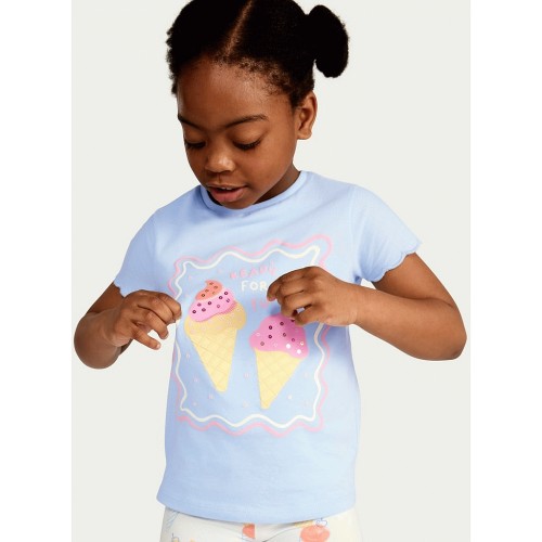 F&F Girls 5-Pack Pure Cotton Ice Cream Print T-Shirts in Multi Blue
