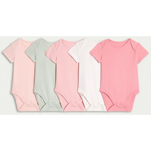 F&F Girls 5-Pack Pure Cotton Broderie Trim Tops in Multi Pink