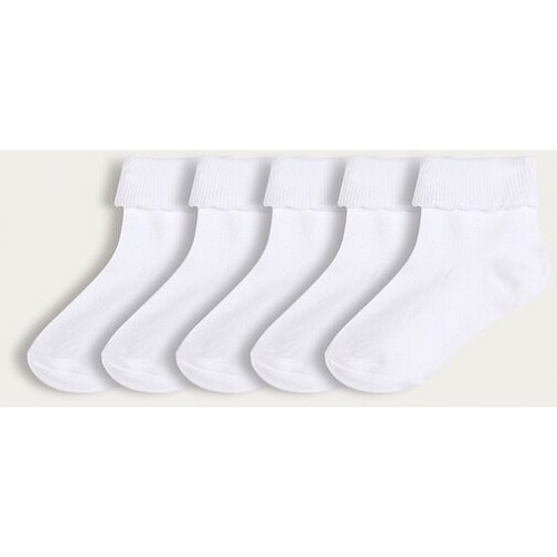 School Girls 5-Pack Cotton Rich Turnover Top Socks in White