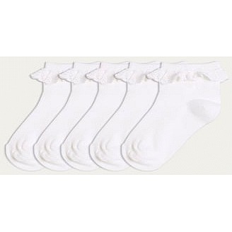 School Girls 5-Pack Cotton Rich Frilly Ankle Socks in White