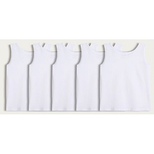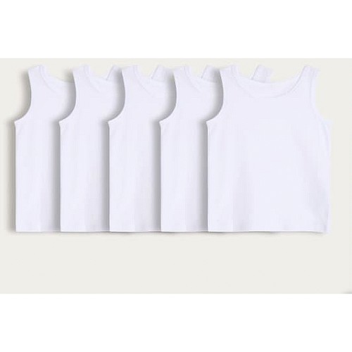 School Boys 5-Pack Pure Cotton Vests in White