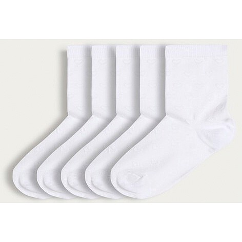 Girls 5-Pack Cotton Rich Heart Pattern Knee High Socks in White