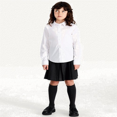F&F School Girls 3-Pack Cotton Rich Skinny Fit Long Sleeved Shirts in White