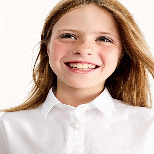 F&F School Girls 3-Pack Cotton Rich Skinny Fit Short Sleeved Shirts in White