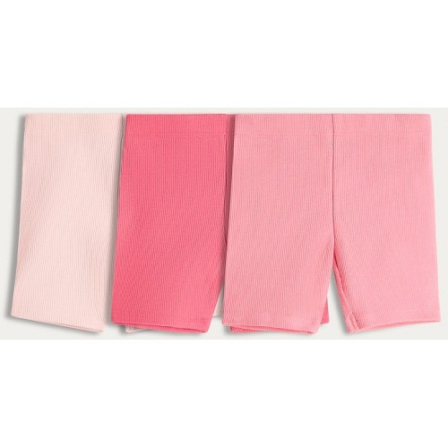 3-Pack Cotton Rich Ribbed Cycling Shorts in Pink