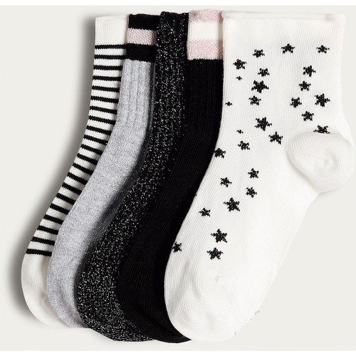 Girls 5-Pack Cotton Rich Patterned Ankle Socks in Multi