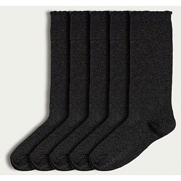 Girls 5-Pack Cotton Rich Knee High Socks in Black
