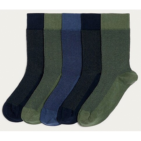 5-Pack Cotton Rich Herringbone Pattern Ankle Socks in Multi