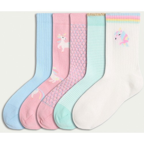 Girls 5-Pack Cotton Rich Unicorn Ankle Socks in Multi