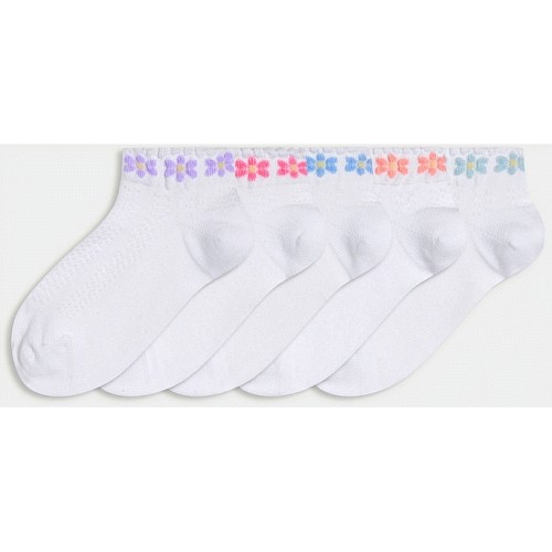 Girls 5-Pack Cotton Rich Floral Trim Trainer Socks in Multi