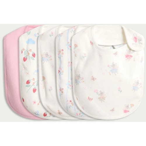 5-Pack Pure Cotton Fairy Printed Bibs in Pink