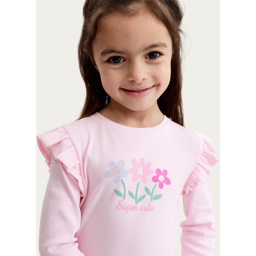 F&F Girls 3-Pack Cotton Rich Ruffle Detail Long Sleeved Tops in Multi Pink