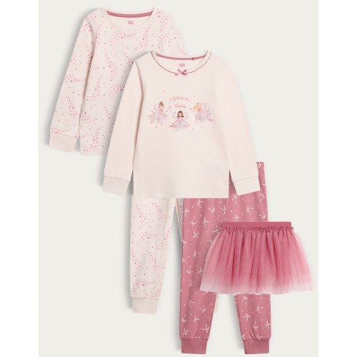 F&F Girls 5-Piece Pure Cotton I Believe in Fairies Pyjama Set in Pink