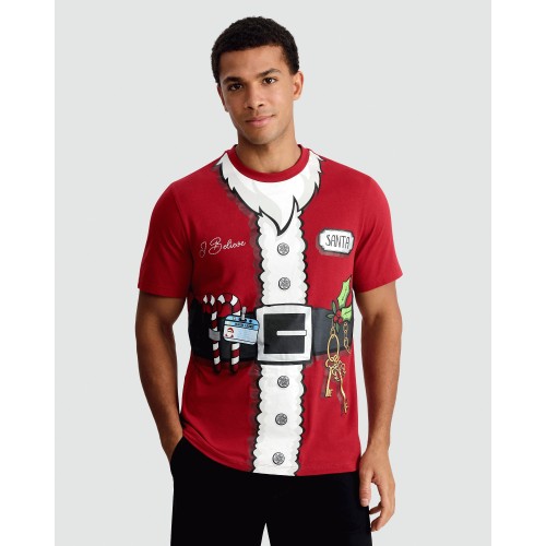 Pure Cotton Santa I Believe Slogan T-Shirt in Red